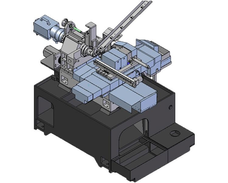 在原有通用数控机床的基础上,增加气动/液压等自动上下料装置, 完成单机的自动上下料工作。